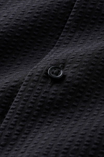 シアサッカーは凹凸のあるシボが入っていてそもそもしわ感があることから、家庭洗濯後洗いざらしでアイロンがけをせずにご着用いただけます。