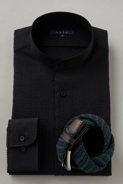 カジュアルのみならずジャケットスタイルにも最適なスタンドカラーシャツ