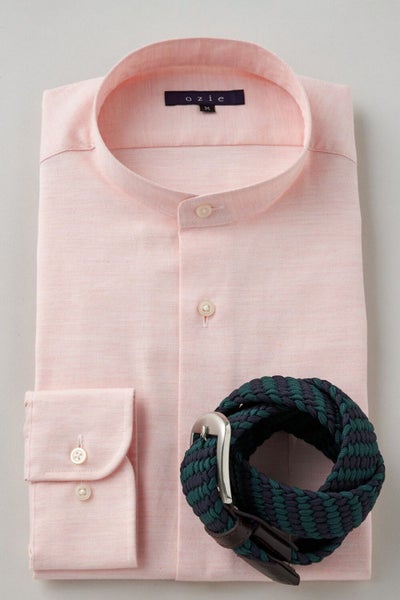 市場で減りつつある衿型で、希少性の高いスタンドカラーシャツ。