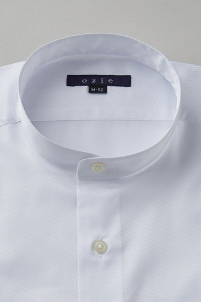 カジュアルのみならずジャケットスタイルにも最適なスタンドカラーシャツ