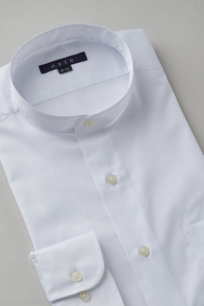 市場で減りつつある衿型で、希少性の高いスタンドカラーシャツ。