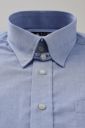 スーピマ綿を使用したドレスシャツの定番生地=ピンポイントオックスフォードに形態安定加工を施した、ブルー無地のタブカラーシャツ。