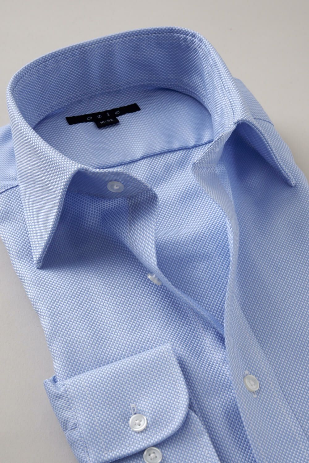 結果、光沢感・ソフト感にあふれ着心地のいい、さらに洗濯後のお手入れが楽といった、相反する事象を併せ持った、ozieの別注生地ならではの上質シャツに仕上がりました。