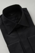 このシャツは前立て部分を二重にしてボタンを隠した、エレガントなフライフロント(比翼仕立て)を採用。