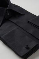 上質麺100%使用のスタイリッシュかつアバンギャルドな黒無地シャツ