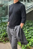 スーツやジャケットの内側に着用してもよし、Tシャツ1枚で上品カジュアルスタイルで着用するも良しの、広範囲に使える上質七分袖Tシャツです。
