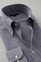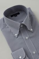 後ろ身頃はボタンダウンの代表的ディティール、センターボックスプリーツにて生産しました。