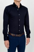 【メンズ・ワイシャツ】スリムストレッチ・ノンアイロン・プレミアムコットン・ニット・ホリゾンタルカラー・ポケット無し
