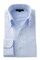 【メンズ・ドレスシャツ・ワイシャツ】ナチュラルフィット・プレミアムコットン・形態安定・イタリアンカラー・ボタンダウン・スキッパー・第一ボタン無し