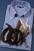 リネンシャツといえどもドレスシャツ(ワイシャツ)の仕様で生産しているため、衿元しっかり!