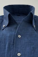 リネンシャツといえどもドレスシャツ(ワイシャツ)の仕様で生産しているため、衿元しっかり!