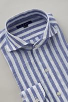 リネンシャツといえどもドレスシャツ(ワイシャツ)の仕様で生産しているため、衿元しっかり!