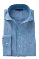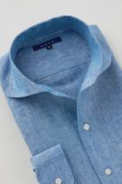 リネンシャツといえどもドレスシャツ(ワイシャツ)の仕様で生産しているため、衿元しっかり!
