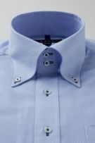 一番上のボタンを2つ縦につけることにより衿が高く、やや大きめな衿型となっています。
