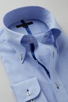 一番上のボタンを閉めているとわかりませんが、このシャツの下前立て部分に約0.9cm幅のテープを配置!
