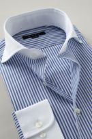 ネクタイ・ノーネクタイ両用の小粋な衿型ホリゾンタル・クレリックシャツ