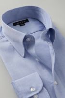 ネクタイを結んだ際のソフトな衿ロールがエレガントなスナップダウンシャツ。