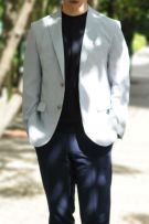 スーツ・ジャケットに合わせることを想定して、ルーズフィットではなく普通サイズにて生産しました。