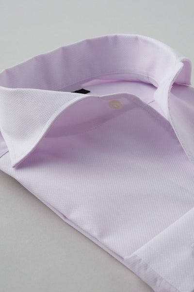 イタリアンカラーと広角なワイドカラーを掛け合わせたスタイリッシュなノーネクタイ専用の衿型です。