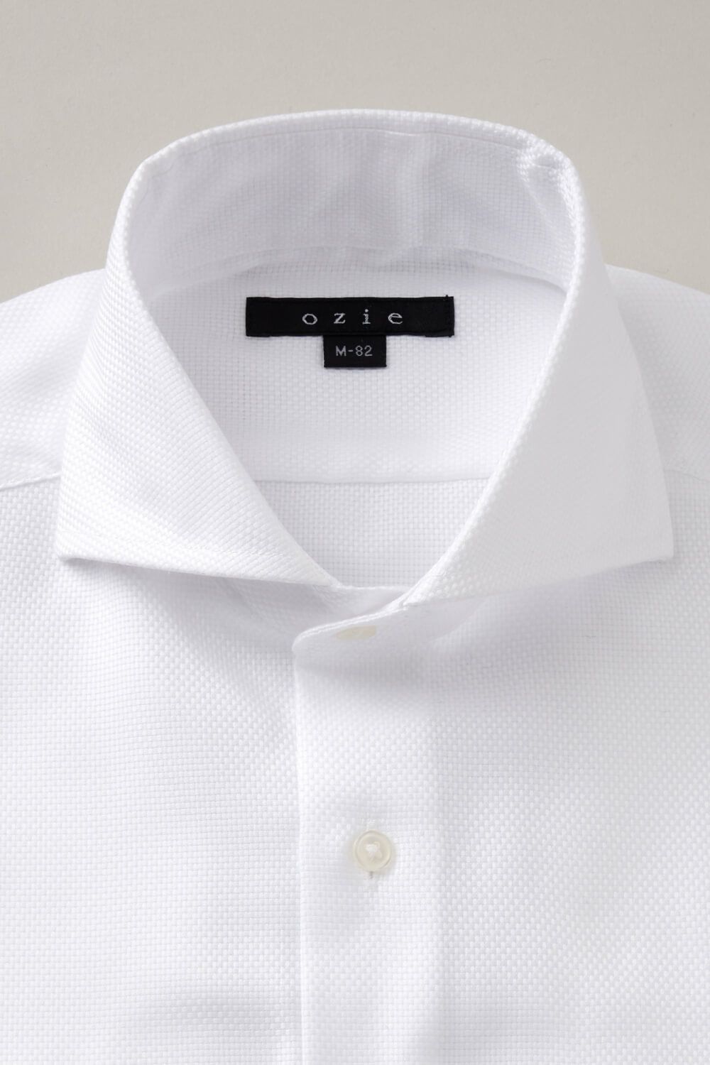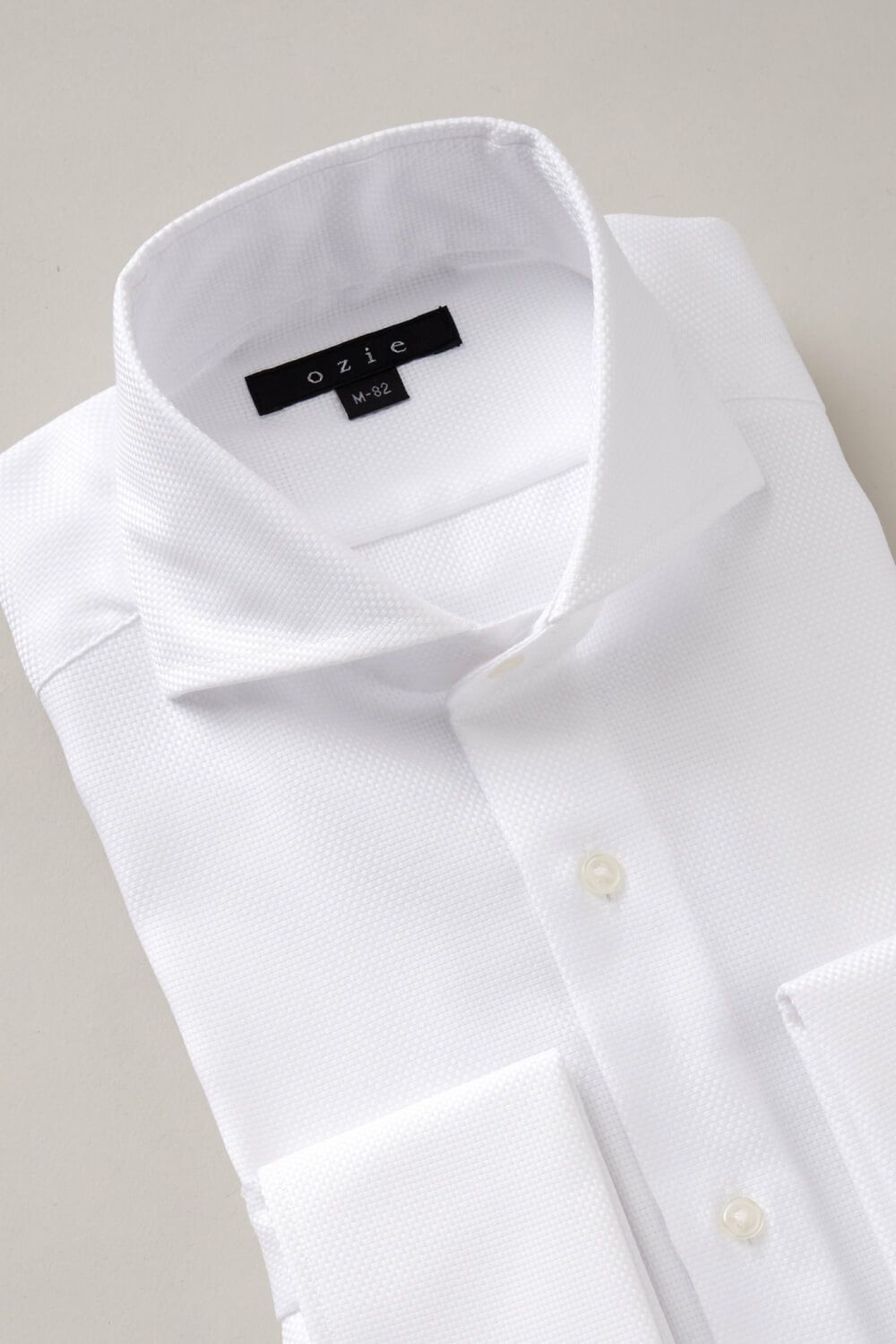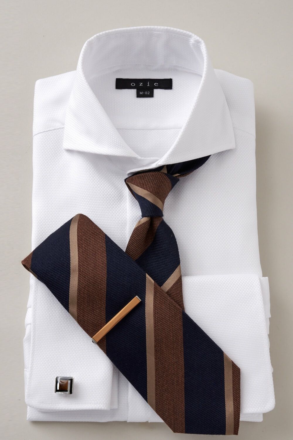そこでozieではネクタイとの相性がいいホリゾンタルカラーをダブルカフス仕様にして生産。