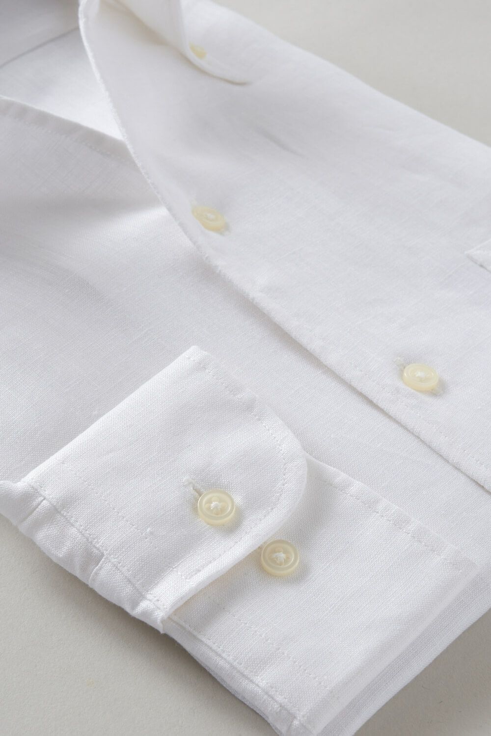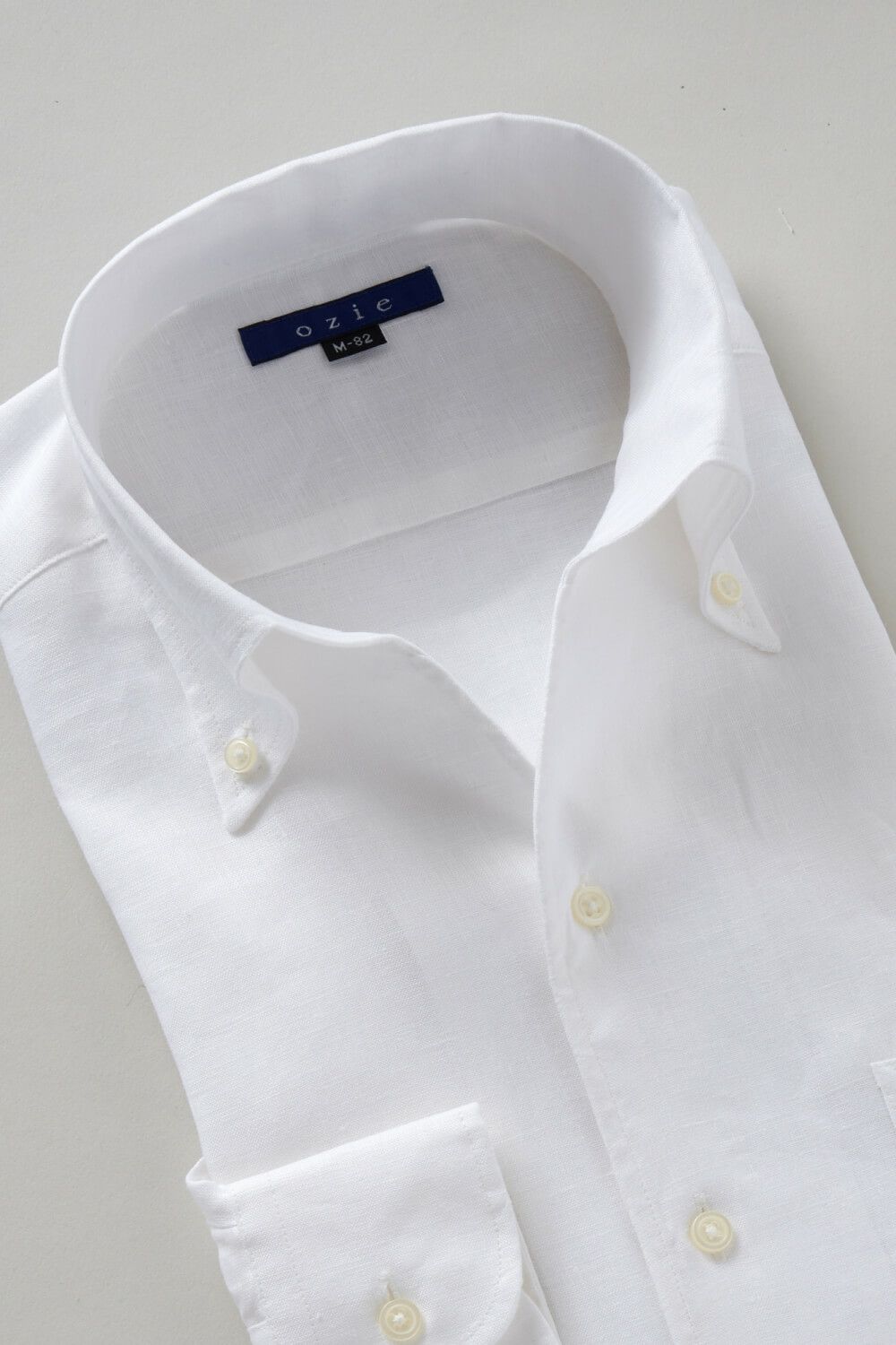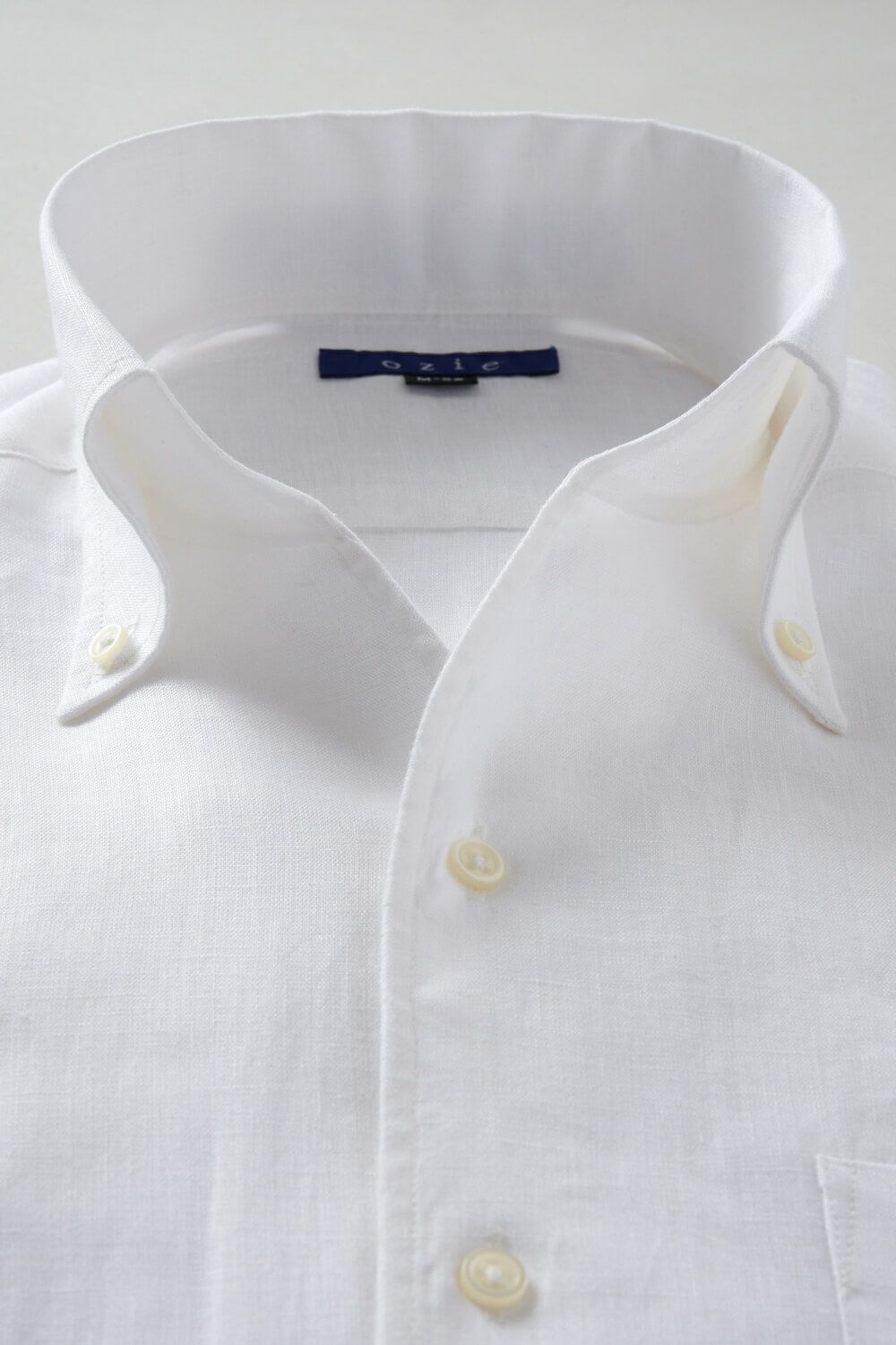 リネンシャツといえどもドレスシャツ(ワイシャツ)の仕様で生産しているため、衿元しっかり!