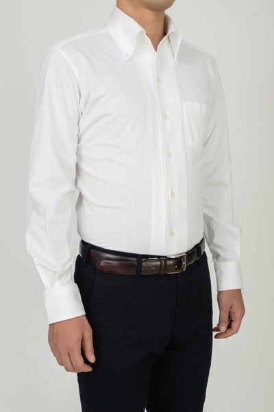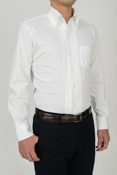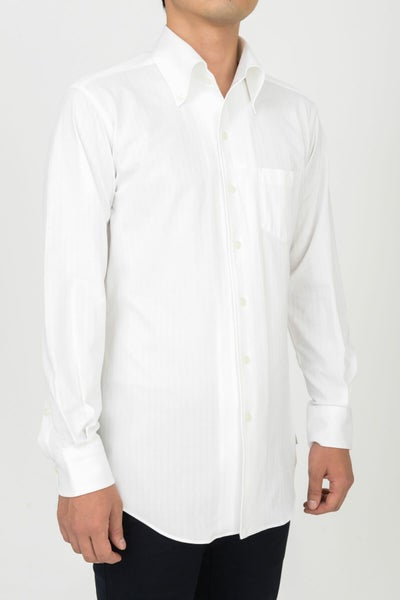 見た目はワイシャツの定番の織柄“ヘリンボーン”そのもの