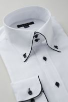 見栄え・着心地抜群+お手入れ楽々+環境に優しいエコ素材使用!?衿・カフスにサテンテープパイピングのドゥエボットーニBDシャツ