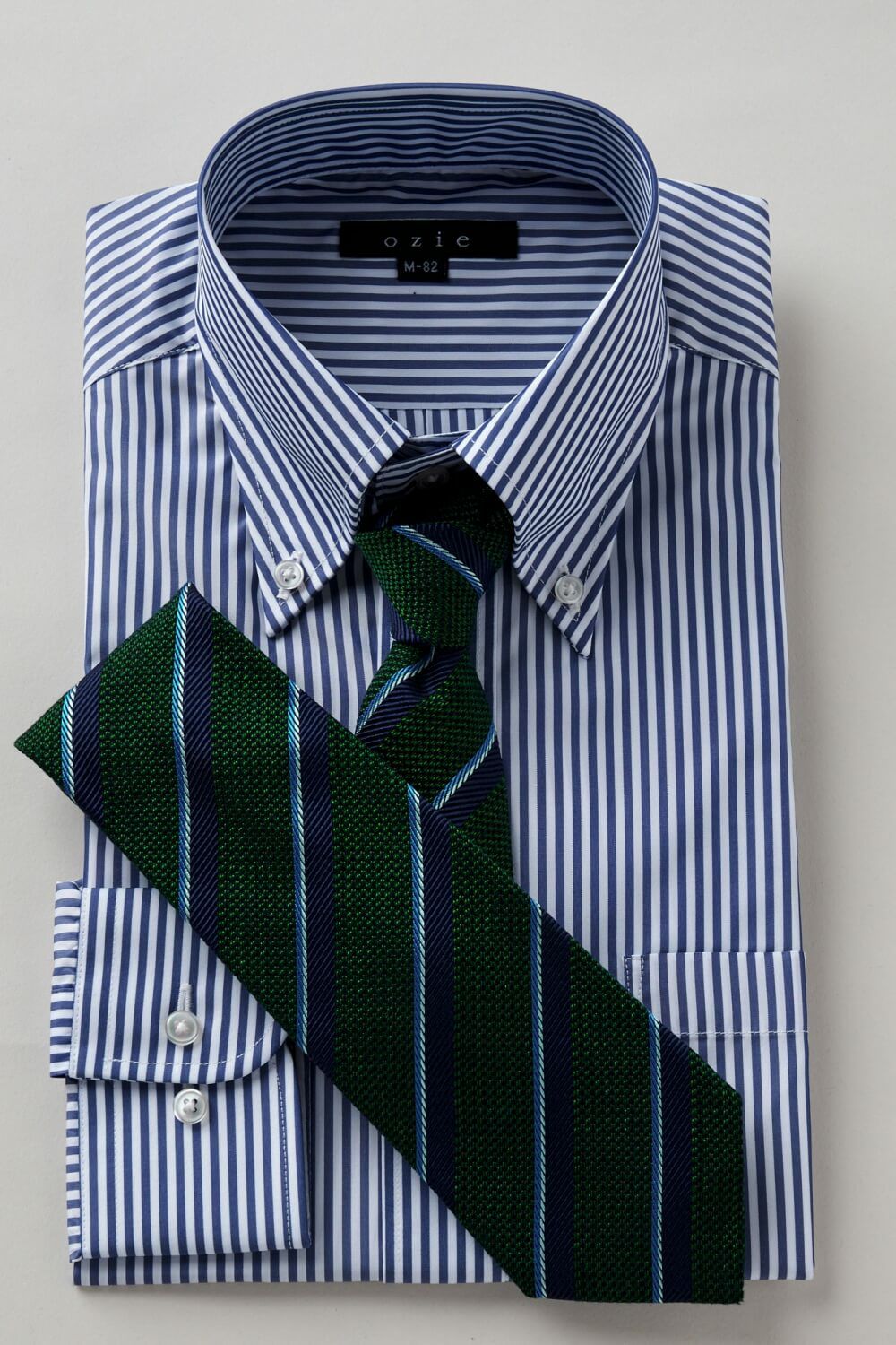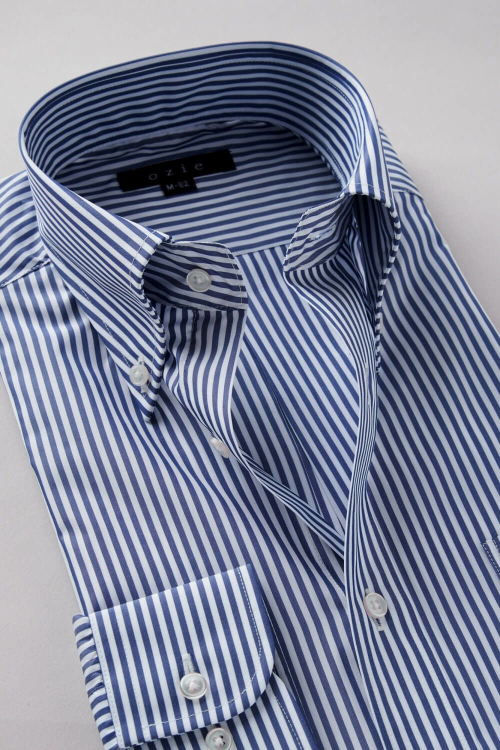 衿には衿立ち・衿開きのよいロールの美しい、大きからず小さからずの使い勝手のよいボタンダウン型を採用しました。