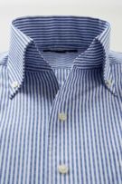 さらに一番上にボタンのないスキッパータイプにて生産。 衿高をやや高くすることにより、より一層衿のロールが大きく出るよう、また衿元がよりきれいに開くように仕上げました。