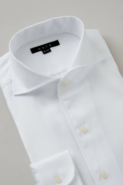 ノーネクタイ専用のややカジュアル度の高い商品でありながら、非常にエレガントなシャツです。