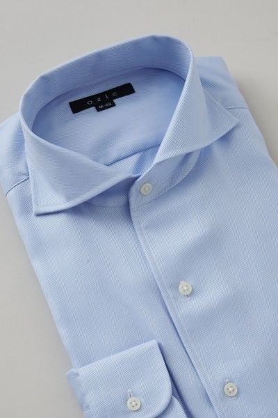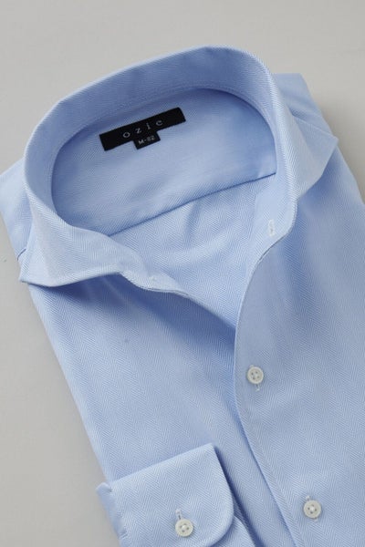 結果、光沢感・ソフト感にあふれ着心地のいい、さらに洗濯後のお手入れが楽といった、相反する事象を併せ持った、ozieの別注生地ならではの上質シャツに仕上がりました。