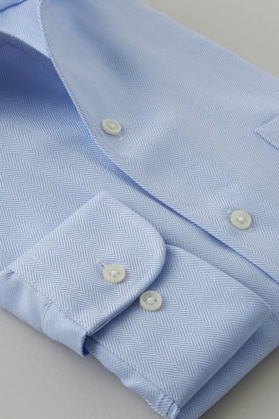 ノーネクタイ専用のややカジュアル度の高い商品でありながら、非常にエレガントなシャツです。