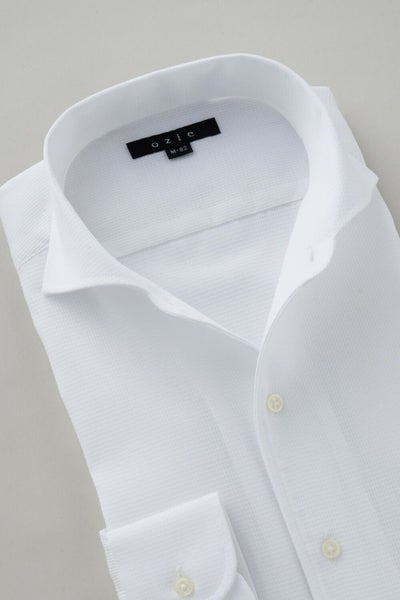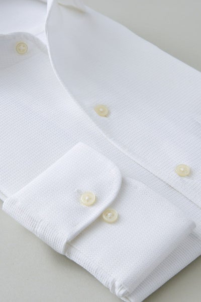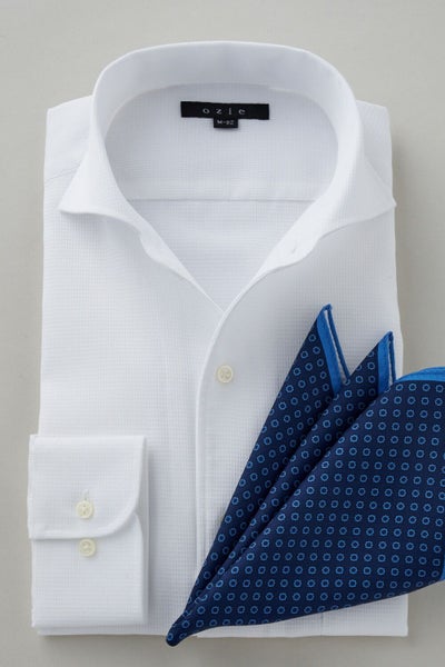 ノーネクタイ専用のややカジュアル度の高い商品でありながら、非常にエレガントなシャツです。