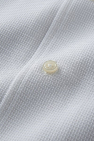 このシャツにはハチス織のアイスコットンを使用。