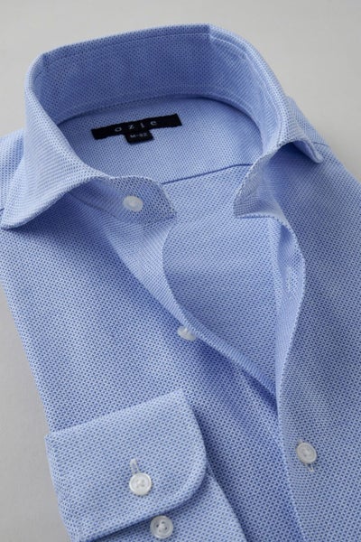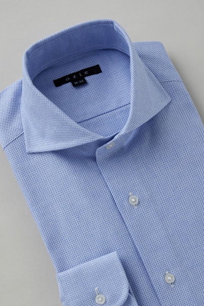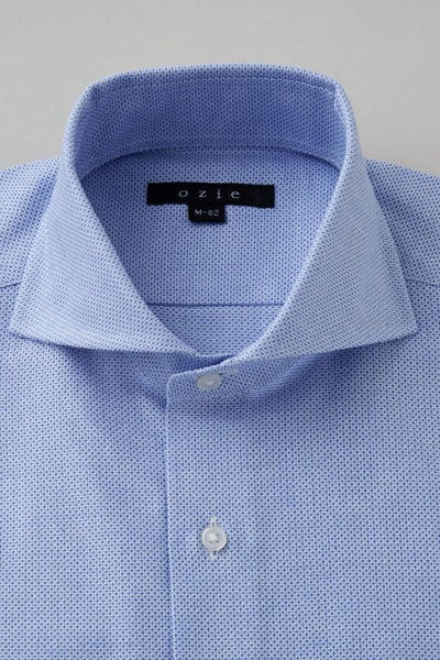 プレミアムコットン.を使用した希少性の高い春夏用シャツ生地=からみ織りを使用したホリゾンタルカラーシャツ