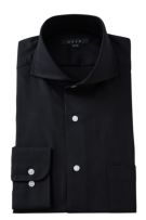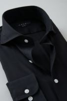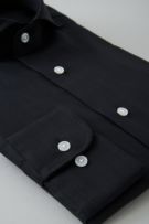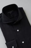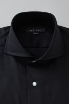 ストレッチ素材使用のアバンギャルドな黒無地シャツ
