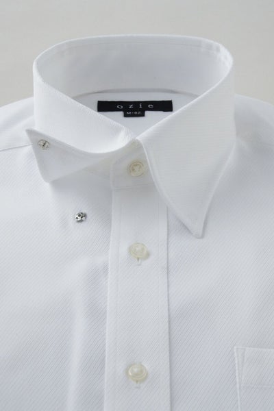 ネクタイを結んだ際のソフトな衿ロールがエレガントなスナップダウンシャツ。