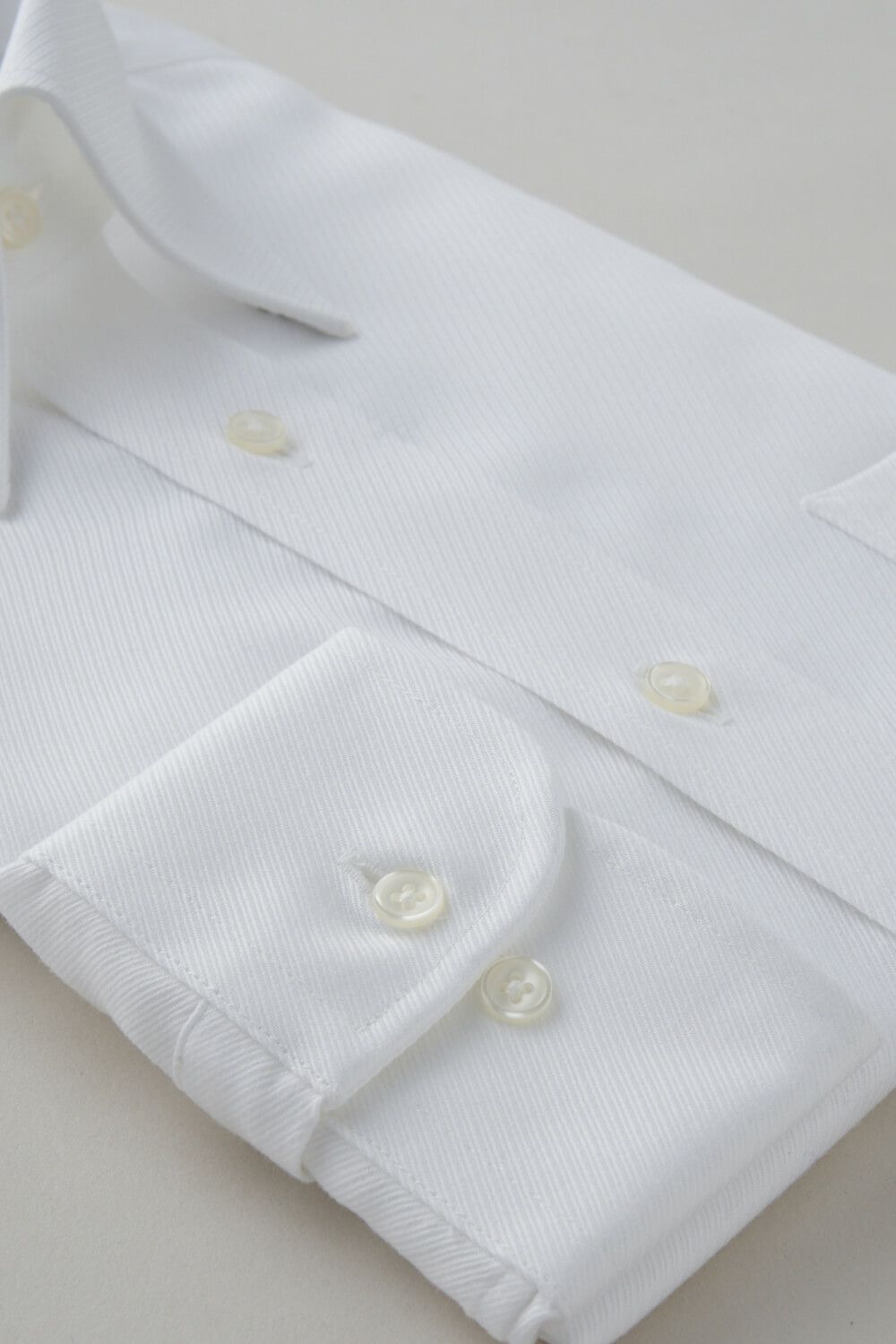 シングルのスーツはもちろんのこと、ダブルのスーツとの相性も抜群と、意外と使用範囲の広いシャツです。