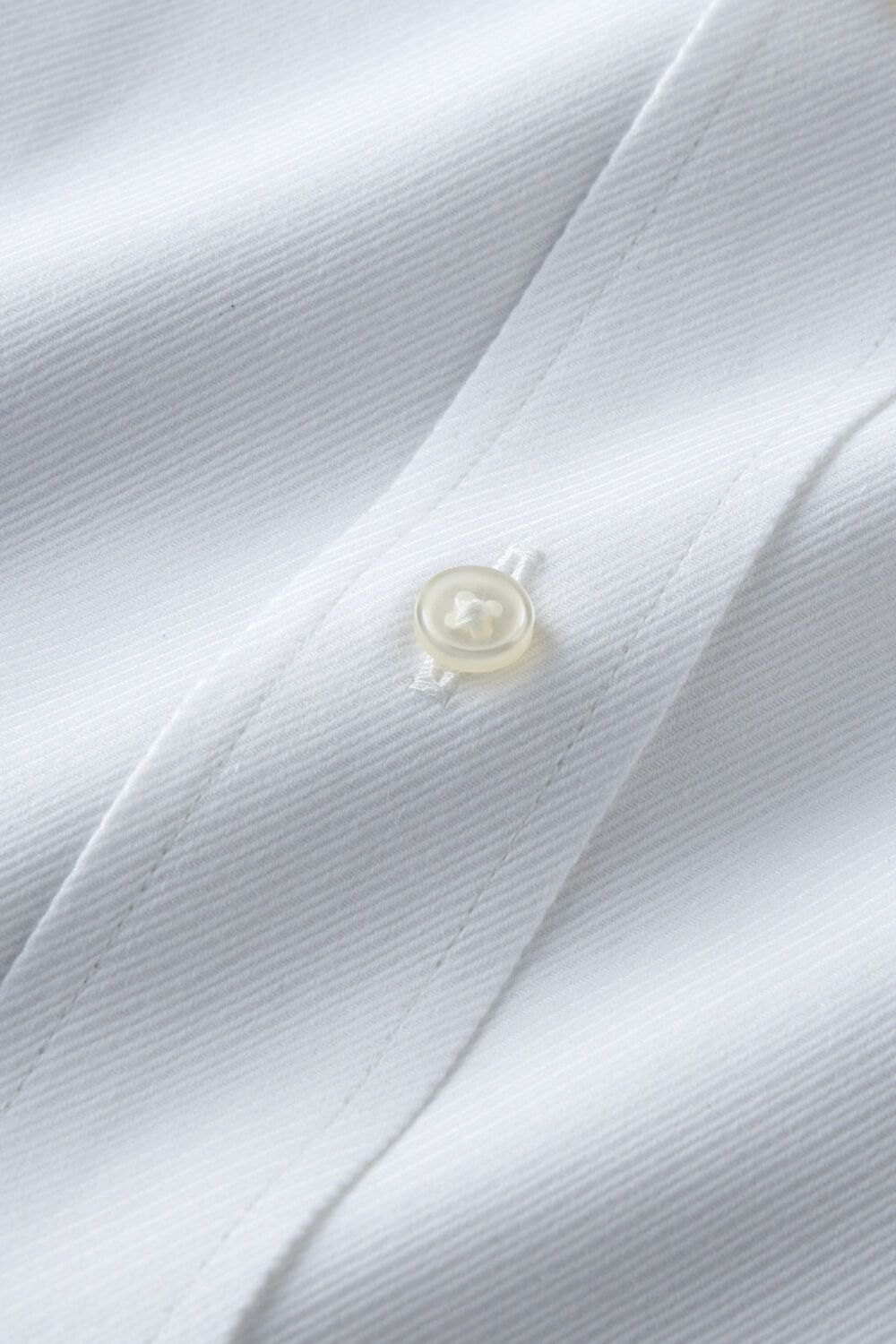 プレミアムコットン使用の綿100%に特殊な形態安定加工を施すことにより、ポリエステル混の形態安定シャツに近い防しわ性を実現しました