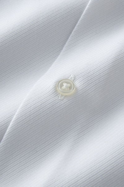 プレミアムコットン使用の綿100%に特殊な形態安定加工を施すことにより、ポリエステル混の形態安定シャツに近い防しわ性を実現しました