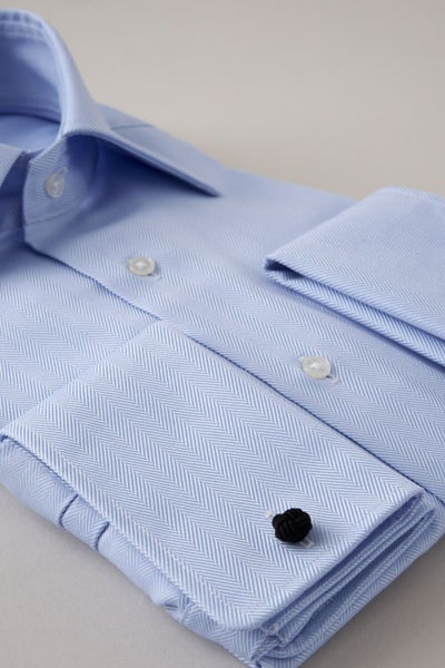 袖口を折り返してカフリンクス(カフスボタン)で留めるカフス型=ダブルカフス。