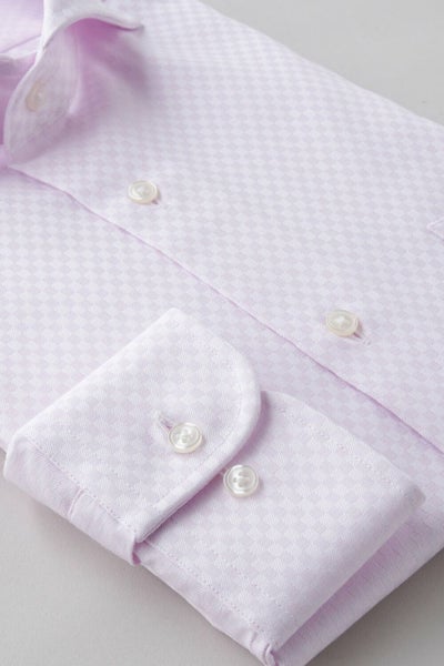 プレミアムコットン使用の綿100%に特殊な形態安定加工を施すことにより、ポリエステル混の形態安定シャツに近い防しわ性を実現しました