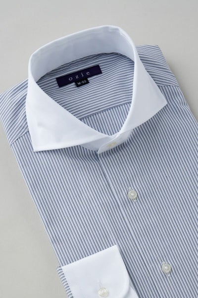 衿の開き角度が大きい、通常のワイドカラーとは一線を画した衿型=それがホリゾンタルカラーシャツ。