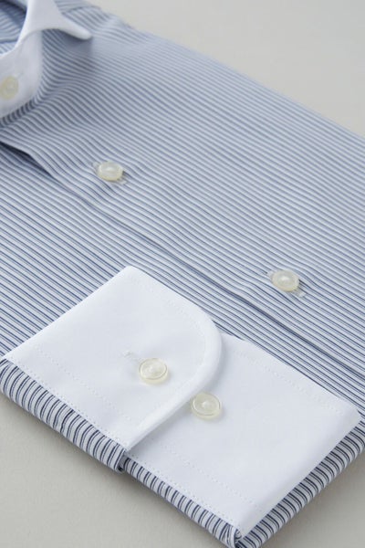結果、光沢感・ソフト感にあふれ着心地のいい、その上洗濯後のお手入れが楽といった、相反する事象を併せ持った上質シャツに仕上がりました。