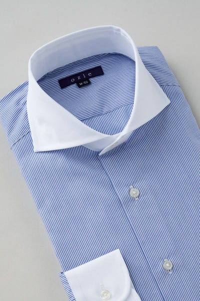 衿の開き角度が大きい、通常のワイドカラーとは一線を画した衿型=それがホリゾンタルカラーシャツ。