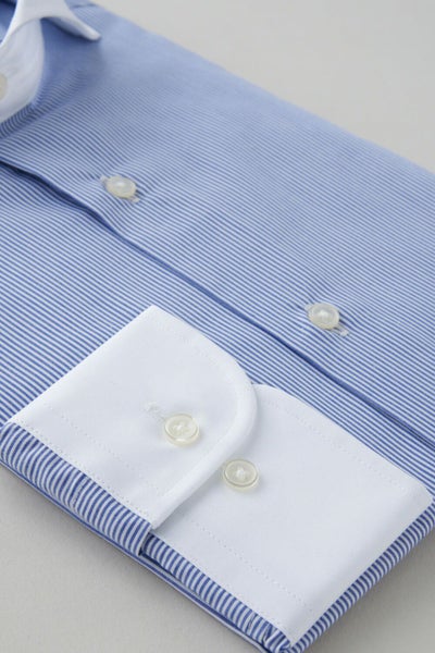 結果、光沢感・ソフト感にあふれ着心地のいい、その上洗濯後のお手入れが楽といった、相反する事象を併せ持った上質シャツに仕上がりました。