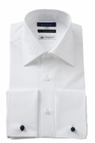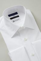 プレミアムコットン=スーピマ綿120番手双糸+トーマスメイソン(THOMAS MAISON)社製の高級生地を使用した、ポケット無しのワイドカラー ダブルカフスシャツ。