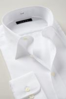 上質な綿100%にお手入れが楽な形態安定加工を施した希少性のある生地を使用した、白ブロードのレギュラーカラーシャツ。