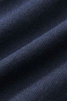 最初のご試着時はヨレが取れませんが、数回着用・洗濯することでリブの目が詰まり、高さが落ち着いてきて写真のように解消されます。