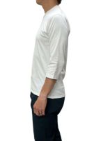 ozieオリジナルの適度な肉厚の40番手度詰め天竺を使ったしっとりとした肌触りと光沢感のあるこのTシャツは、スーツ・ジャケットにあわせるのに最適な上品七分袖Tシャツです。